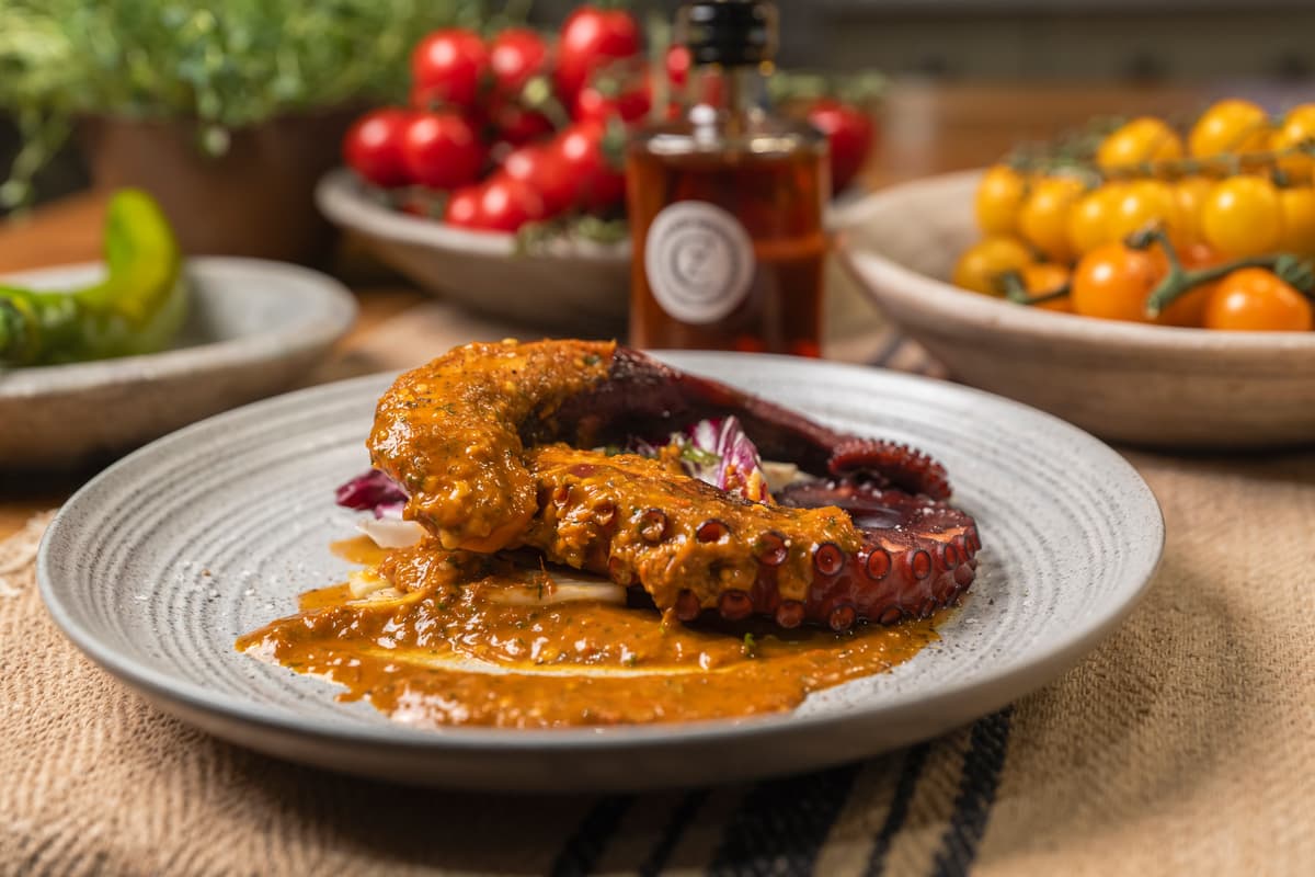 Pan fried cod with caponata
