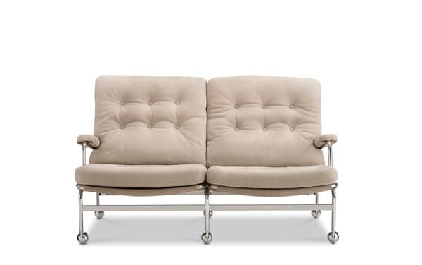 This elegant 2-seater sofa offers the perfect accompaniment to the original Karin armchair, designed by Bruno Mathsson in 1969. It builds on the classic collection, with comfortable stuffed cushions that rest on a chrome-plated frame with supporting web. In addition to sofas and the original chair, the Karin range also features a stool and tables available in multiple sizes.