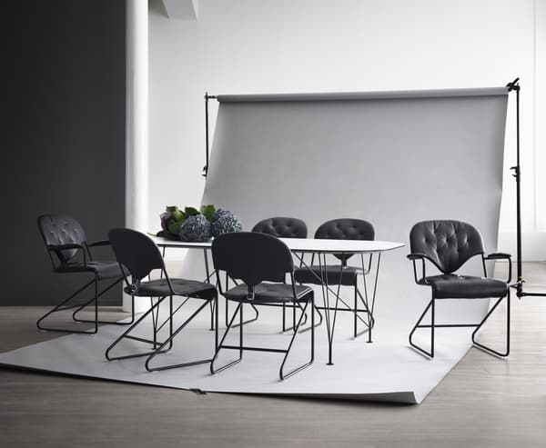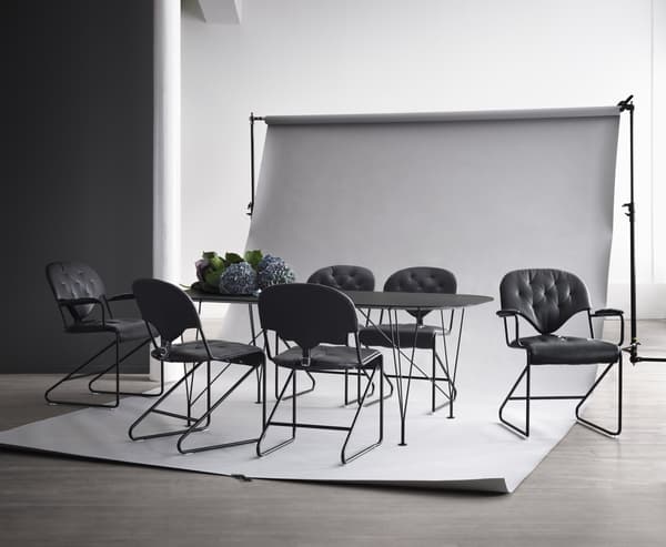 Oval dining table that encourages conversation and eye contact with all guests. Also available in two more versions, a dining table with two extendable tops and a smaller café table size.