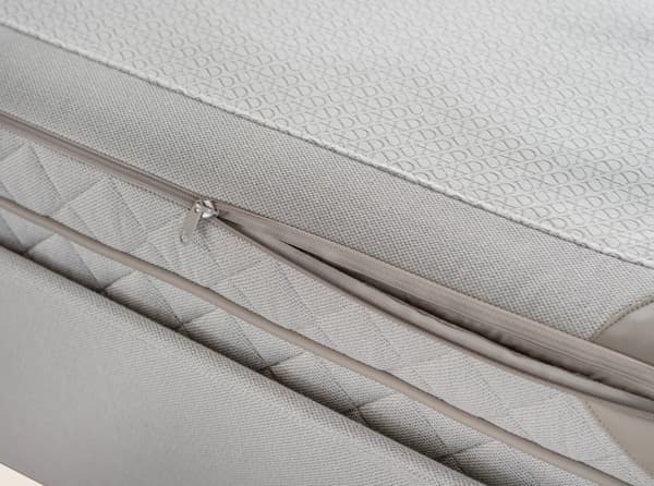 The top layer of The DUX Bed with Pascal can be unzipped to reveal six interchangeable spring cassettes; three for each side. You can arrange the cassettes based on your body size, shape and needs.
